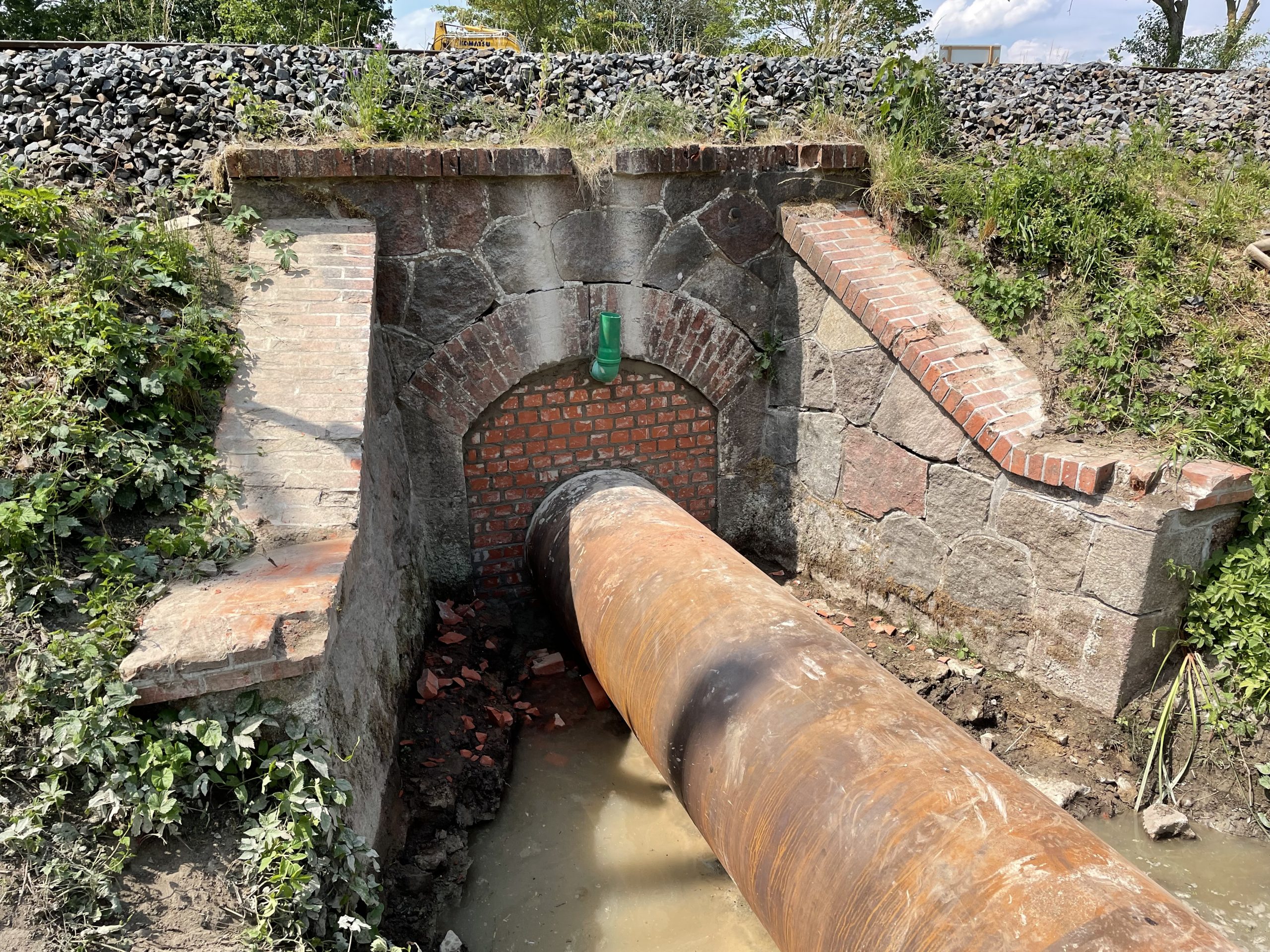 Ersatzneunbau Durchlass bei Nordbahn in Grimmen Strecke 6088 Km 197,041 Ausgeführte Arbeiten: - Verrohrung vom Bestand mit DN 1000 L= 15,0m - Verfüllung Hohlraum und Herstellung Ein und Auslaufbereich Auftraggeber: DB Netz AG Ausführungszeitraum: Mai/Juni 2022 Auftragsvolumen: ca. 190.000 €